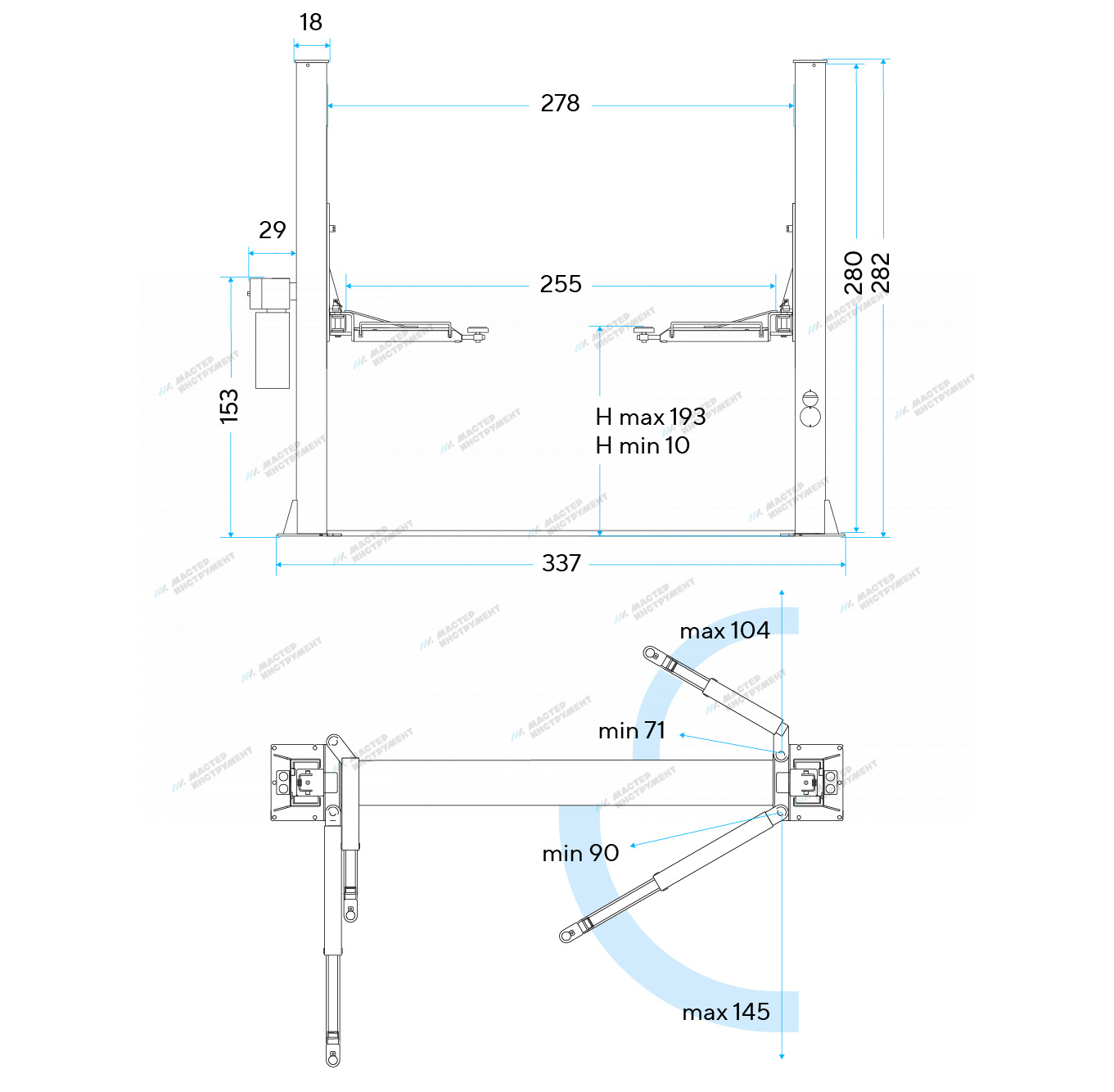 Электрогидравлический привод обеспечивает быстрый, точный, плавный и равномерный подъём и опускание по сравнению с ручным или пневматическим аналогом; время полного цикла — не более 45 секунд;