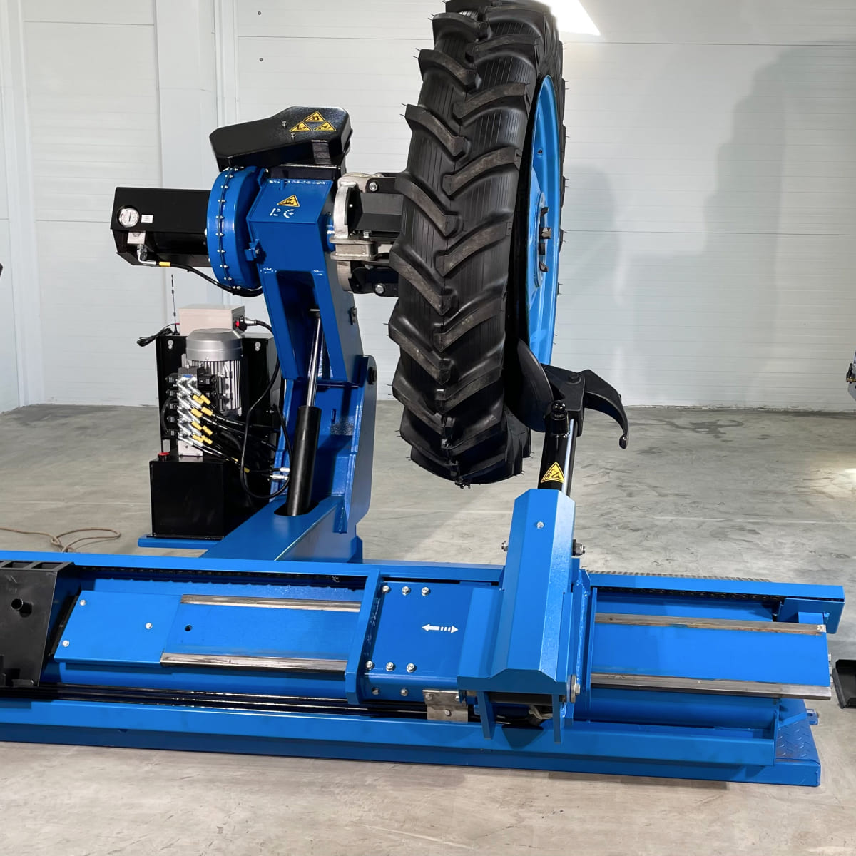 Станок предназначен для работы с крупногабаритными шинами, а также подходит для мастерских, специализирующихся на ремонте и обслуживании сельскохозяйственной, карьерной и строительной техники