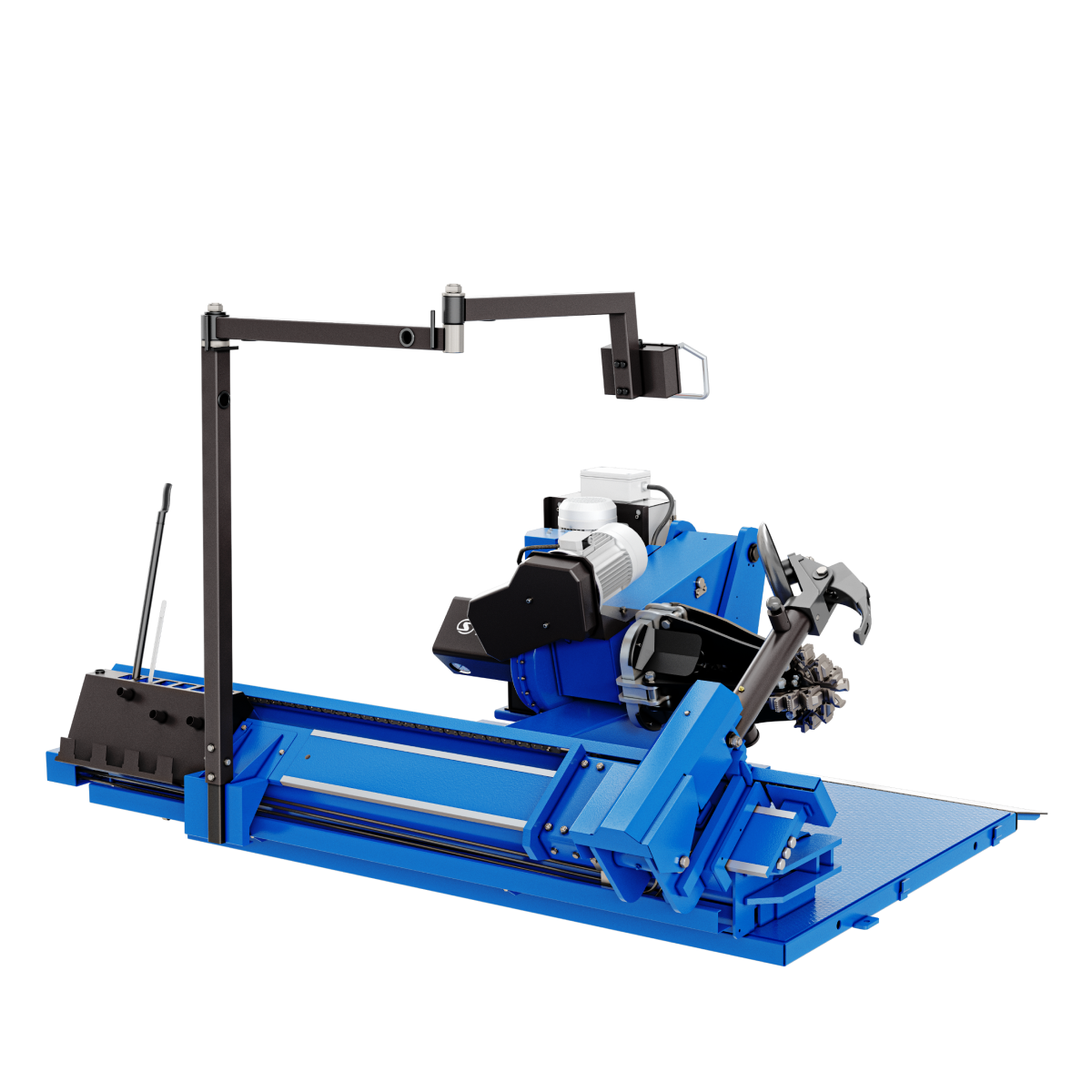 • Универсальный электрогидравлический шиномонтажный стенд для монтажа и демонтажа крупногабаритных шин (например, для Белаза с грузоподъемностью 55 т), а также шин грузовых автомобилей, карьерной и строительной техники • Автоматический привод монтажного инструмента