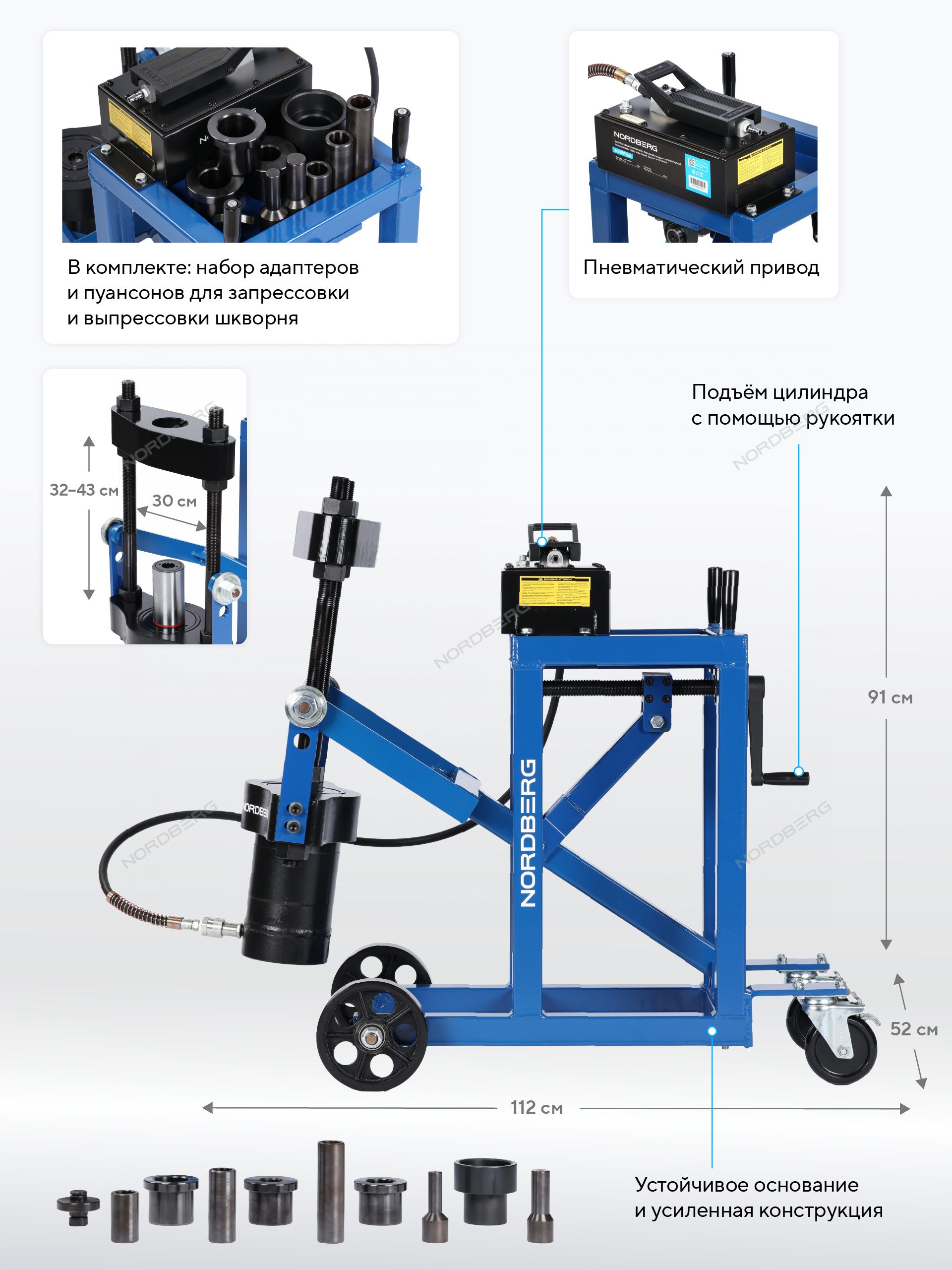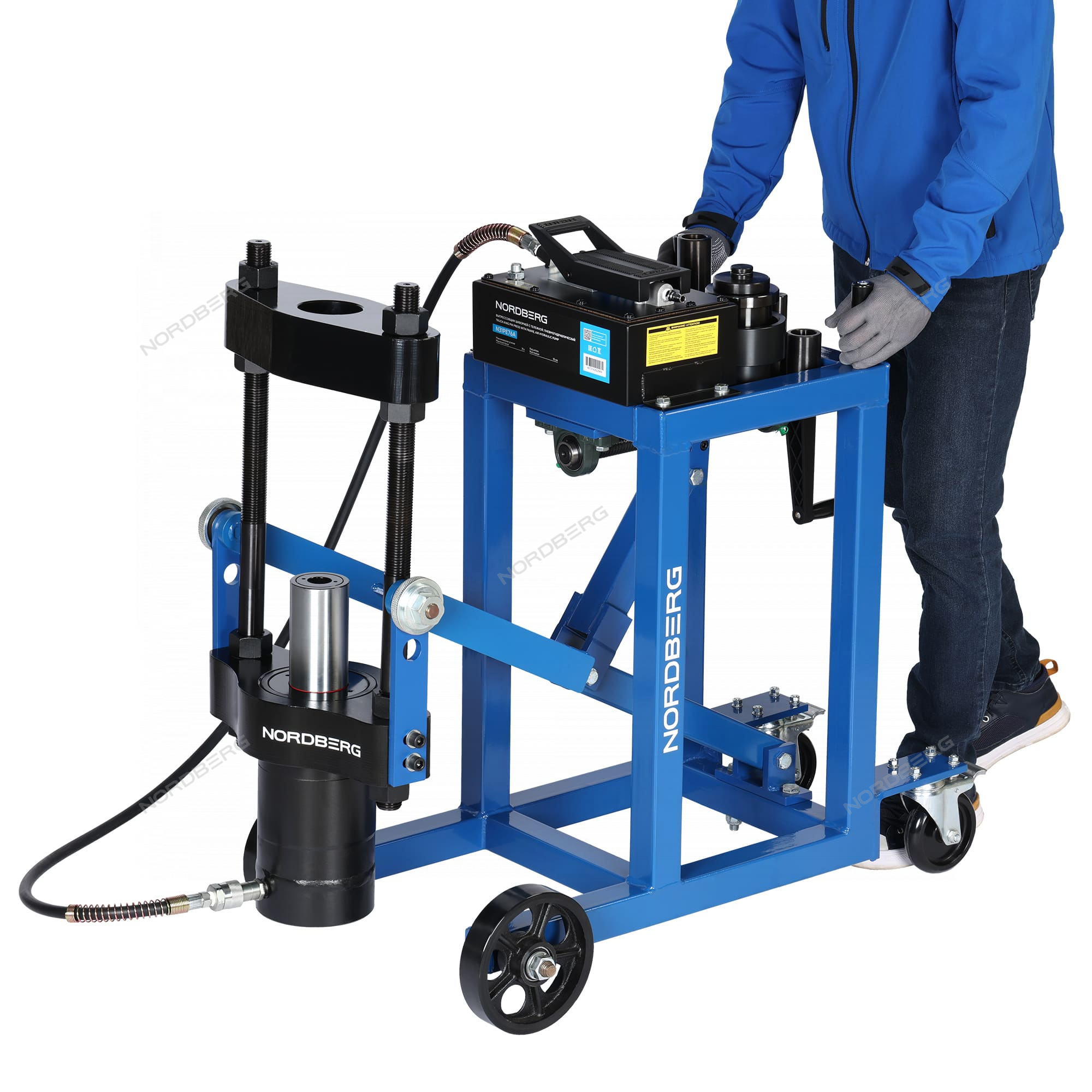 NORDBERG N31PE76A — выпрессовщик шкворней с тележкой и пневмоприводом.