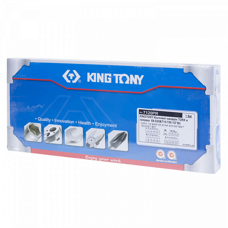 7120PR KING TONY Набор торцевых насадок и головок 1/2&3/8, TORX, Е6-Е20, Т10-Т55, 20 предметов