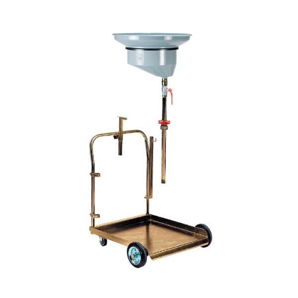 Маслосборник (15 литров), регулируемый по высоте, монтирован на поворачиваемом шарнире, упрощающем его позиционирование.