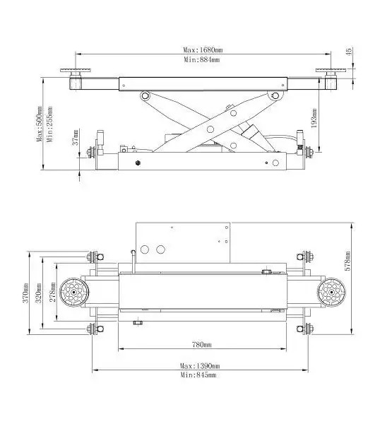 Траверса пневмогидравлическая для ножничных и четырехстоечных подъемников, грузоподъемность - 3,5 т., автономное управление пневматической педалью